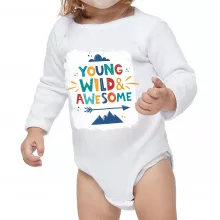 Use our battle tested marketing materials for Young and Wild Baby Long Sleeve Onesie - Awesome Baby Long Sleeve Bodysuit - Colorful Baby One-Piece