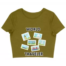 Use our battle tested marketing materials for World Traveler Women's Cropped T-Shirt - Unique Crop Top - Art Cropped Tee