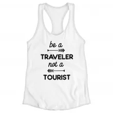 Use our battle tested marketing materials for Be a Traveler Not a Tourist Racerback Tank - Cool Design Tank - Unique Workout Tank