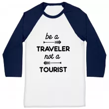 Use our battle tested marketing materials for Be a Traveler Not a Tourist Baseball T-Shirt - Cool Design T-Shirt - Unique Baseball Tee
