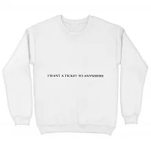 Use our battle tested marketing materials for I Want a Ticket to Anywhere Sweatshirt - Word Design Crewneck Sweatshirt - Printed Sweatshirt