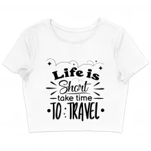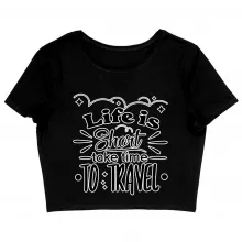 Use our battle tested marketing materials for Life Is Short Women's Cropped T-Shirt - Time to Travel Crop Top - Graphic Cropped Tee