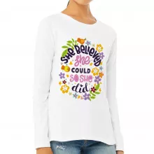 Use our battle tested marketing materials for She Believed She Could So She Did Women's Long Sleeve T-Shirt - Inspirational Long Sleeve Tee - Printed T-Shirt