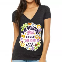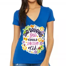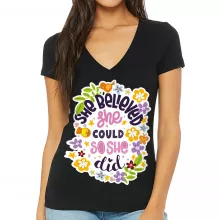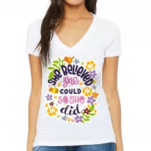 Use our battle tested marketing materials for She Believed She Could So She Did Women's V-Neck T-Shirt - Inspirational V-Neck Tee - Printed T-Shirt