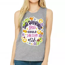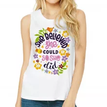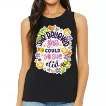 Use our battle tested marketing materials for She Believed She Could So She Did Women's Muscle Tank - Inspirational Tank Top - Printed Workout Tank