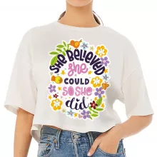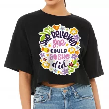 Use our battle tested marketing materials for She Believed She Could So She Did Women's Crop Tee Shirt - Inspirational Cropped T-Shirt - Printed Crop Top
