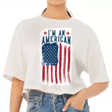 Use our battle tested marketing materials for I am an American Women's Crop Tee Shirt - USA Flag Cropped T-Shirt - Patriotic Crop Top