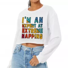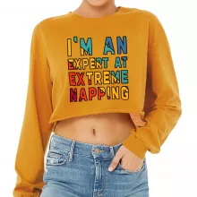 Use our battle tested marketing materials for Napping Cropped Long Sleeve T-Shirt - Funny Women's T-Shirt - Cool Quote Long Sleeve Tee