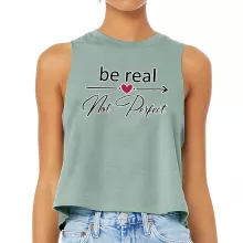 Use our battle tested marketing materials for Be Real Racerback Cropped Tank - Cute Design Women's Tank - Trendy Tank Top