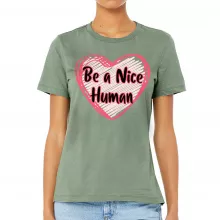 Use our battle tested marketing materials for Be a Nice Human Women's T-Shirt - Heart Print T-Shirt - Graphic Relaxed Tee