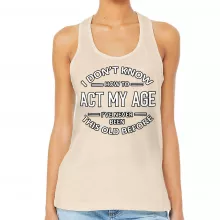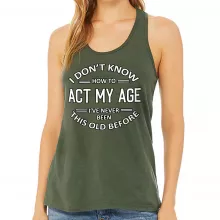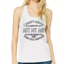 Use our battle tested marketing materials for I Don't Know How to Act My Age Women's Racerback Tank - Sarcastic Tank Top - Funny Workout Tank