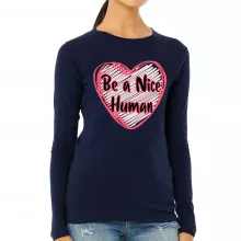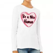 Use our battle tested marketing materials for Be a Nice Human Women's Long Sleeve T-Shirt - Heart Print Long Sleeve Tee - Graphic T-Shirt
