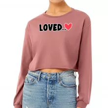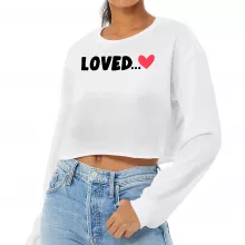 Use our battle tested marketing materials for Loved Cropped Long Sleeve T-Shirt - Cute Heart Women's T-Shirt - Themed Long Sleeve Tee