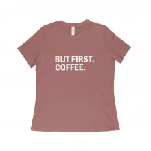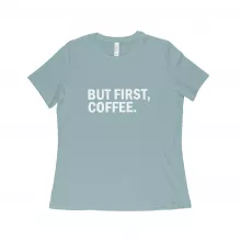 Use our battle tested marketing materials for But First Coffee Women's Relaxed Heather T-Shirt
