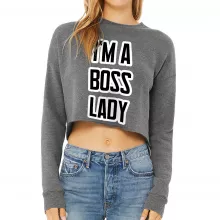 Use our battle tested marketing materials for Boss Lady Cropped Sweatshirt - Cool Trendy Women's Sweatshirt - Quotes Crop Crew Sweatshirt