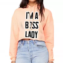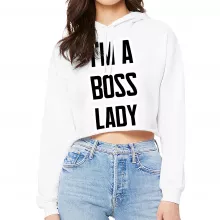 Use our battle tested marketing materials for Boss Lady Women's Cropped Hoodie - Cool Trendy Cropped Hoodie - Quotes Hooded Sweatshirt