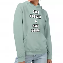 Use our battle tested marketing materials for Stay Focused Sponge Fleece Hoodie - Keep Going Hoodie - Motivational Hooded Sweatshirt