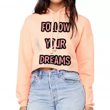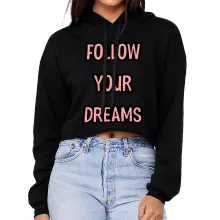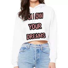 Use our battle tested marketing materials for Follow Your Dreams Women's Cropped Hoodie - Trendy Cropped Hoodie - Printed Hooded Sweatshirt
