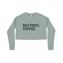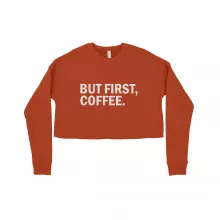 Use our battle tested marketing materials for But First Coffee Women's Cropped Fleece Sweatshirt