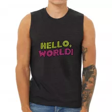 Use our battle tested marketing materials for Hello World Men's Muscle Tank - Cool Design Men's Sleeveless T-Shirt - Trendy Tank