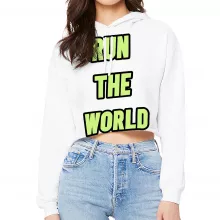 Use our battle tested marketing materials for Run the World Women's Cropped Hoodie - Best Quote Cropped Hoodie - Cool Graphic Hooded Sweatshirt