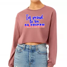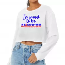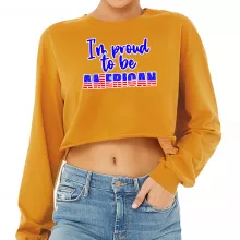 Use our battle tested marketing materials for Proud to Be American Cropped Long Sleeve T-Shirt - Patriotic Women's T-Shirt - USA Flag Long Sleeve Tee