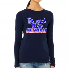 Use our battle tested marketing materials for Proud to Be American Women's Long Sleeve T-Shirt - Patriotic Long Sleeve Tee - USA Flag T-Shirt