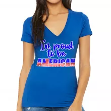 Use our battle tested marketing materials for Proud to Be American Women's V-Neck T-Shirt - Patriotic V-Neck Tee - USA Flag T-Shirt