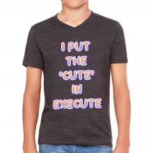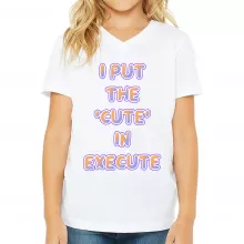 Use our battle tested marketing materials for I Put the Cute in Execute Kids' V-Neck T-Shirt - Funny T-Shirt - Best Print V-Neck Tee