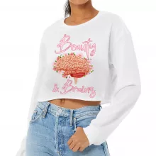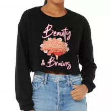 Use our battle tested marketing materials for Beauty and Brains Cropped Long Sleeve T-Shirt - Floral Women's T-Shirt - Illustration Long Sleeve Tee