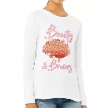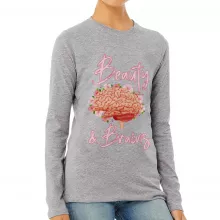 Use our battle tested marketing materials for Beauty and Brains Women's Long Sleeve T-Shirt - Floral Long Sleeve Tee - Illustration T-Shirt