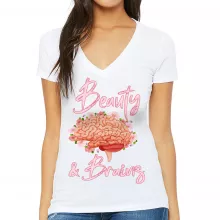 Use our battle tested marketing materials for Beauty and Brains Women's V-Neck T-Shirt - Floral V-Neck Tee - Illustration T-Shirt
