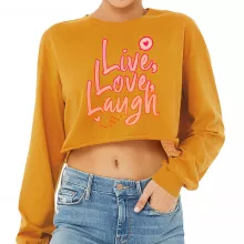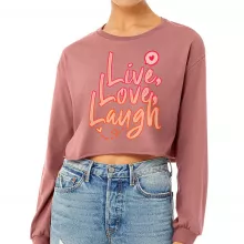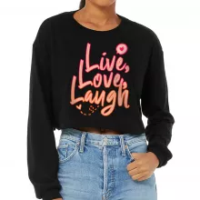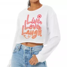 Use our battle tested marketing materials for Live Laugh Love Cropped Long Sleeve T-Shirt - Cute Design Women's T-Shirt - Printed Long Sleeve Tee