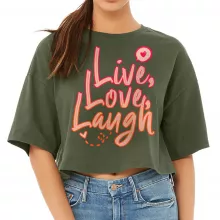 Use our battle tested marketing materials for Live Laugh Love Women's Crop Tee Shirt - Cute Design Cropped T-Shirt - Printed Crop Top