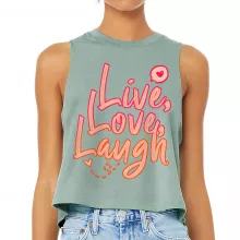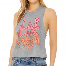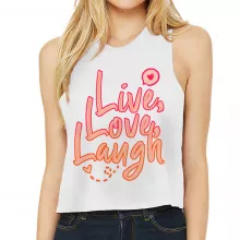 Use our battle tested marketing materials for Live Laugh Love Racerback Cropped Tank - Cute Design Women's Tank - Printed Tank Top