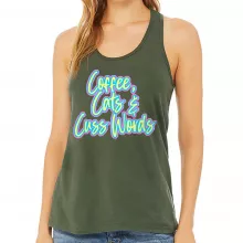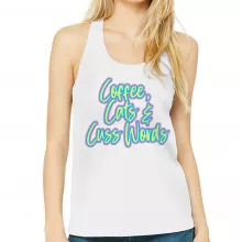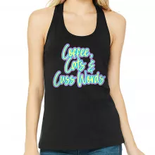 Use our battle tested marketing materials for Cats Coffee Cuss Words Women's Racerback Tank - Funny Tank Top - Trendy Workout Tank