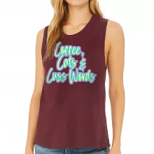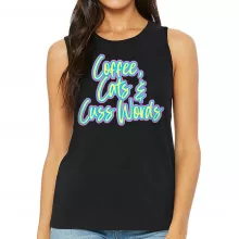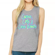 Use our battle tested marketing materials for Cats Coffee Cuss Words Women's Muscle Tank - Funny Tank Top - Trendy Workout Tank