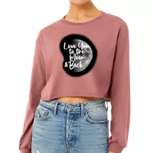 Use our battle tested marketing materials for Love You to the Moon and Back Cropped Long Sleeve T-Shirt - Moon Graphic Women's T-Shirt - Cool Trendy Long Sleeve Tee