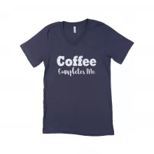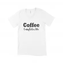Use our battle tested marketing materials for Coffee Completes Me Unisex Jersey V-Neck T-Shirt