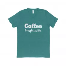 Use our battle tested marketing materials for Coffee Completes Me Unisex Triblend V-Neck T-Shirt