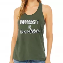 Use our battle tested marketing materials for Different Is Beautiful Women's Racerback Tank - Cute Design Tank Top - Graphic Workout Tank