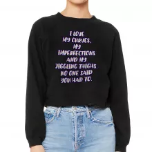Use our battle tested marketing materials for I Love My Curves Raglan Pullover - Feminist Women's Sweatshirt - Trendy Pullover