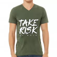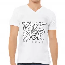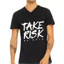 Use our battle tested marketing materials for Take Risk V-Neck T-Shirt - Funny T-Shirt - Themed V-Neck Tee