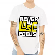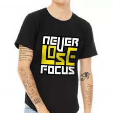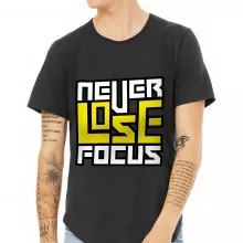 Use our battle tested marketing materials for Never Lose Focus Curved Hem T-Shirt - Inspirational T-Shirt - Printed Curved Hem Tee