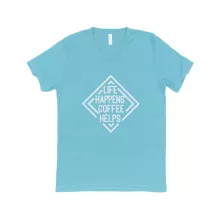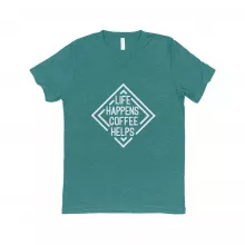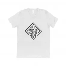 Use our battle tested marketing materials for Life Happens Coffee Helps Unisex Triblend V-Neck T-Shirt