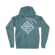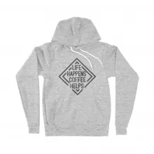 Use our battle tested marketing materials for Life Happens Coffee Helps Unisex Sponge Fleece Hoodie