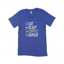 Use our battle tested marketing materials for Eat Sleep Coffee Repeat Unisex Jersey V-Neck T-Shirt