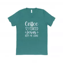 Use our battle tested marketing materials for Jesus Keeps Me Going Unisex Triblend V-Neck T-Shirt