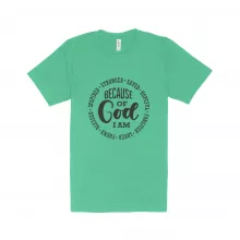 Use our battle tested marketing materials for Because of God I Am Unisex Heather T-Shirt