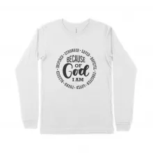 Use our battle tested marketing materials for Because of God I Am Unisex Jersey Long Sleeve T-Shirt